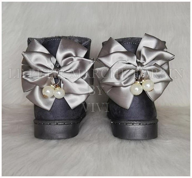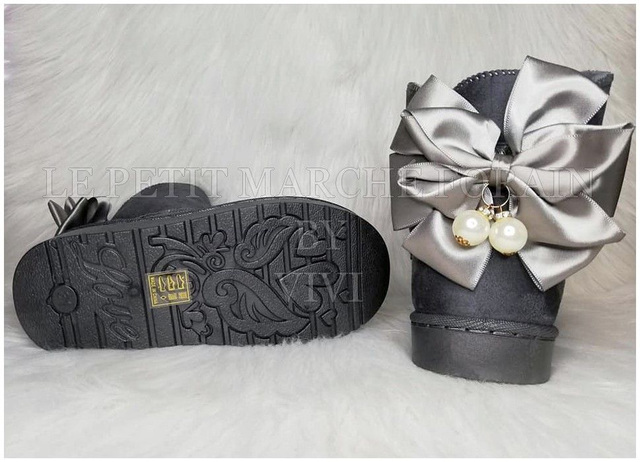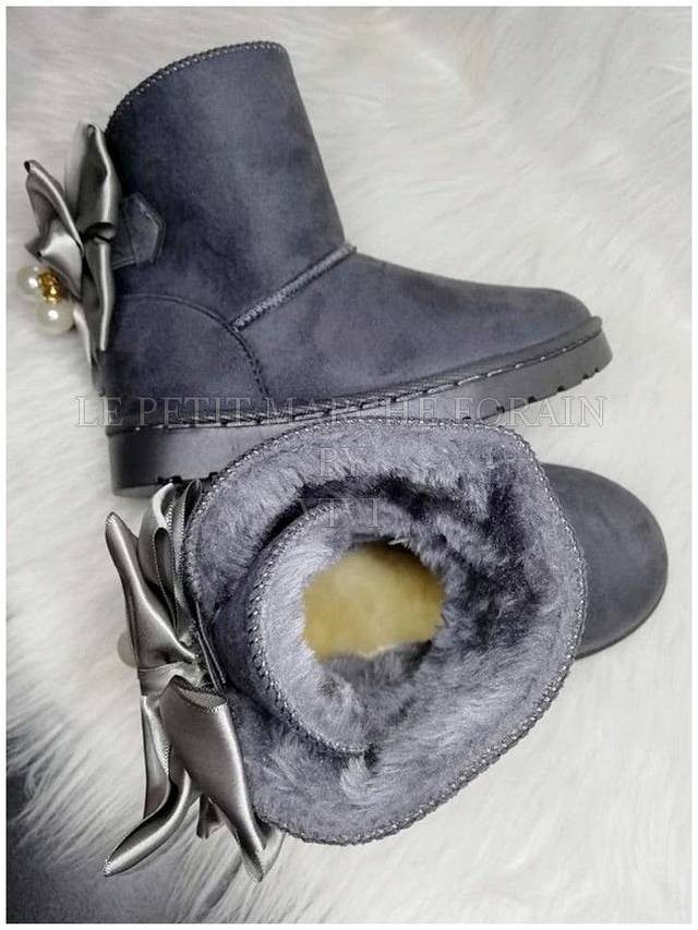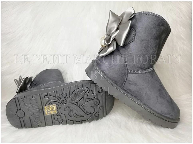 BOOTS FOURREES effet daim avec nœud en satin (30-35)