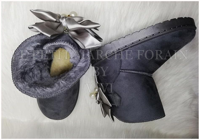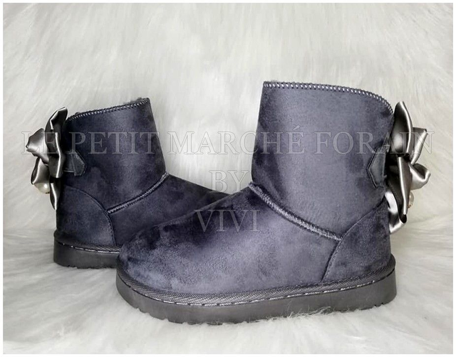 Boots fourrées effet daim avec nœud en satin