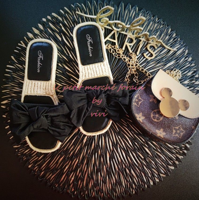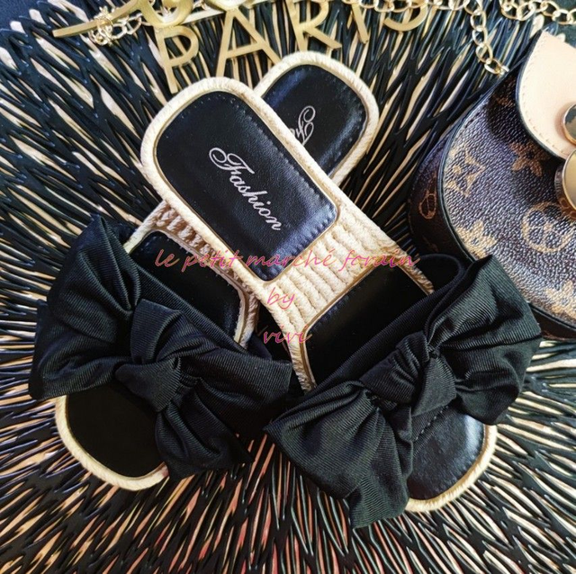 - Nœud oversize en tissu noir, placé délicatement sur le dessus du pied, apporte une touche girly et raffinée sans jamais nuire à la simplicité de la chaussure.